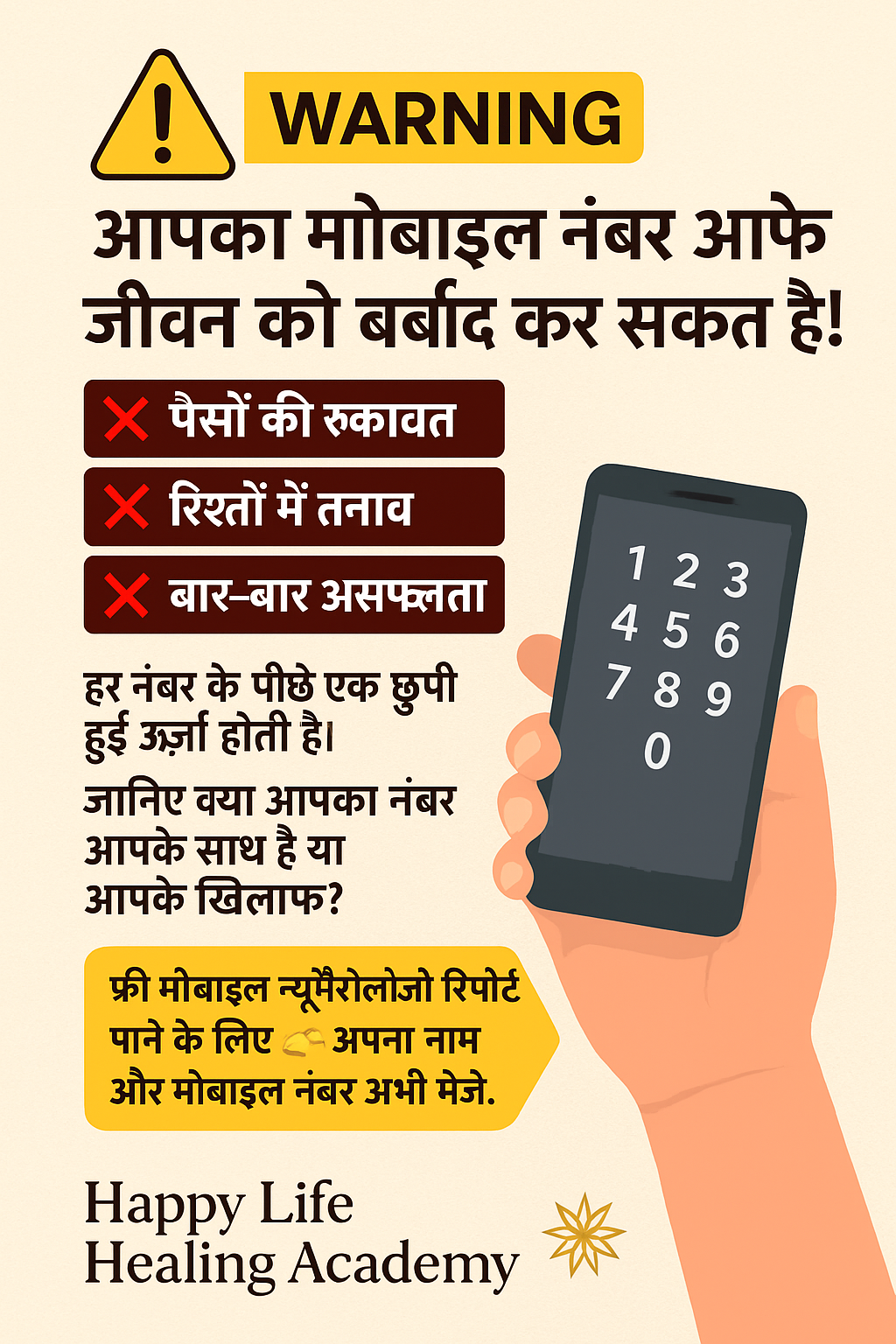 👉 Aapka mobile number aap har roz use karte ho, isliye wo aapki energy aur destiny ko directly influence karta hai. Sahi number aapki life me success, opportunities aur positive growth laata hai, jabki galat number blockages aur struggles create karta hai.
